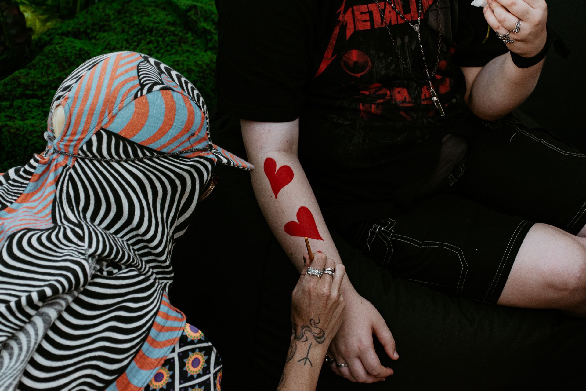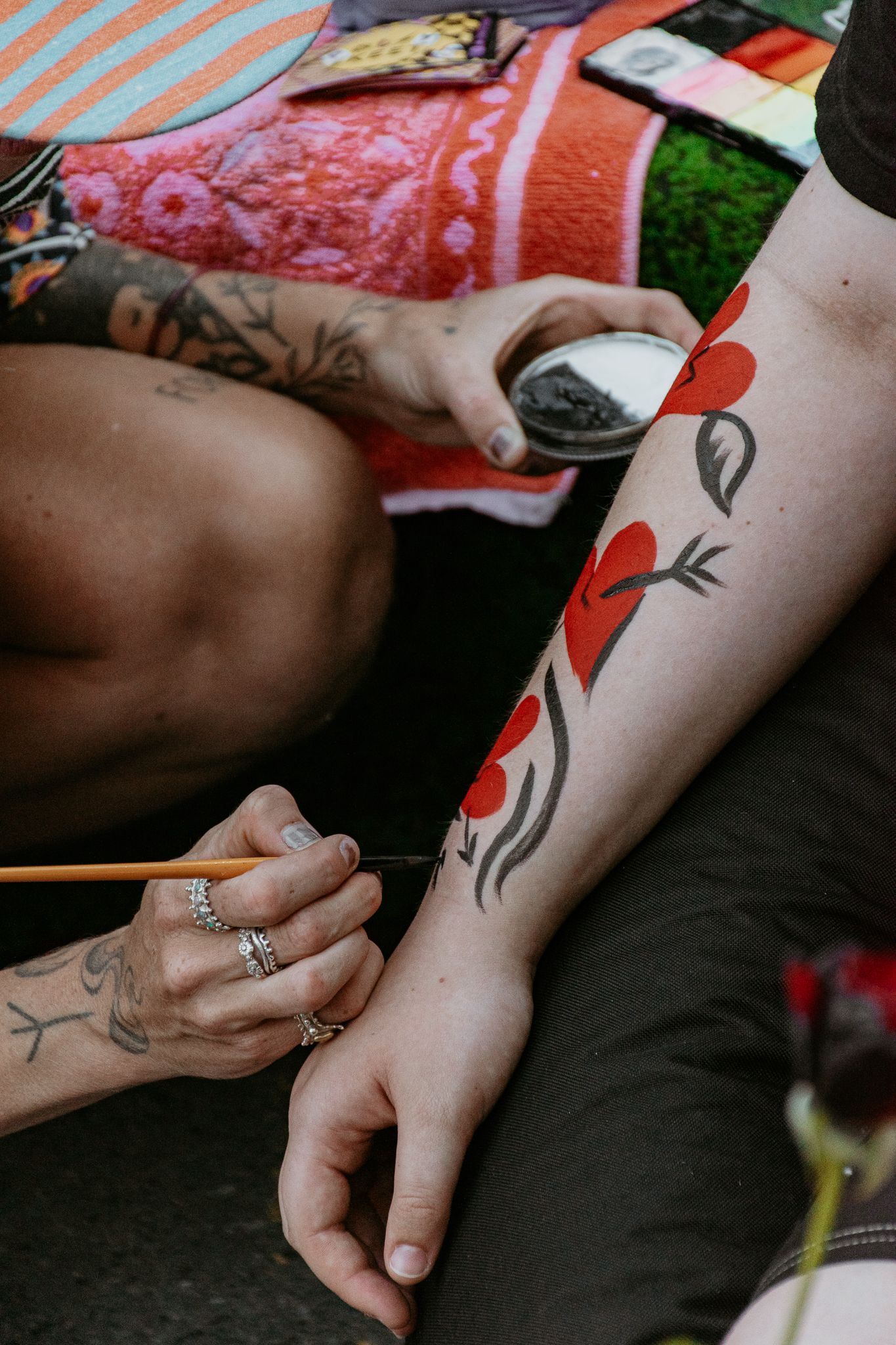 Drop in to the Lovers' Den to add swirls of colour to your skin with body painter, Patsy Skeet.