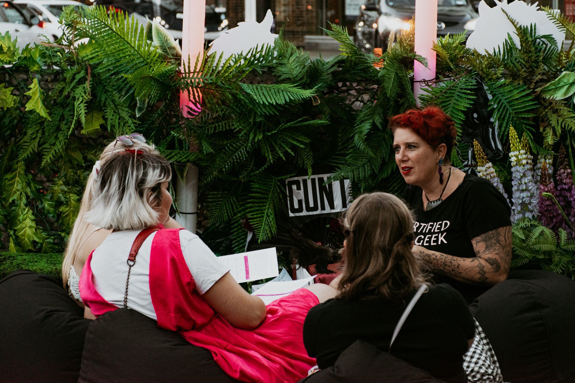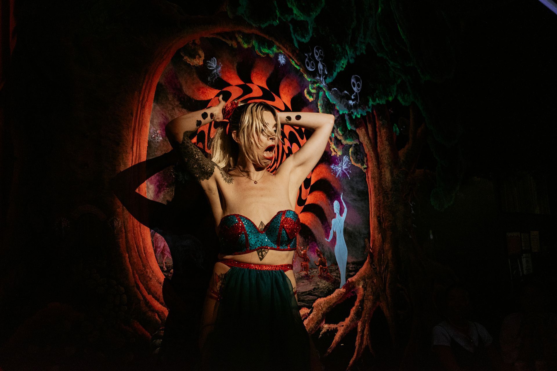 Stop by the Lovers' Den at any time to find an array of unusual activities to take part in or observe. From Deliciously Unromantic Dining to burlesque and even free 15min sessions with a sexologist. The den decor is by Legit Events.